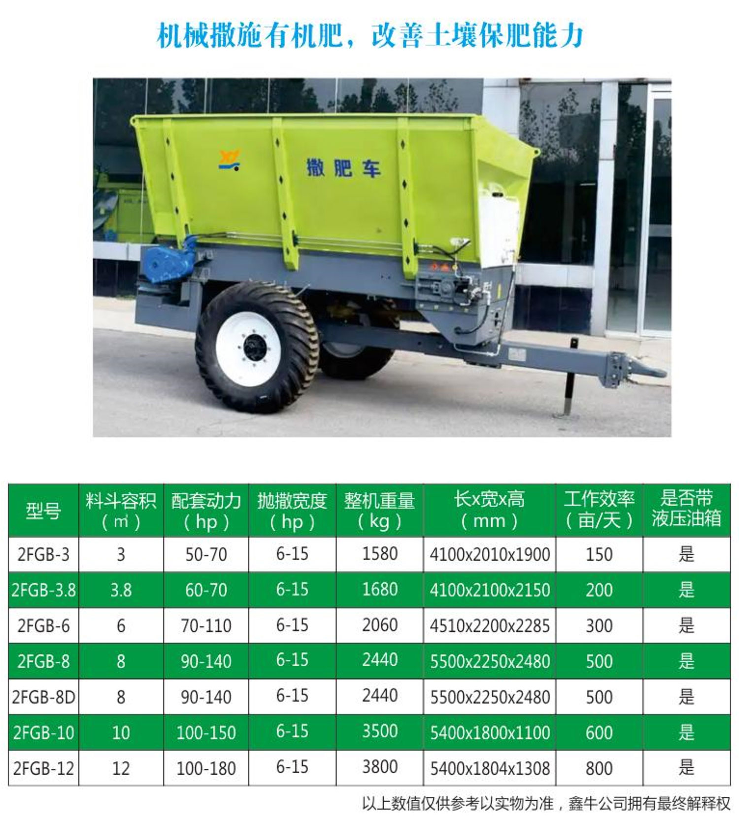 双盘固体有机肥撒肥车,与拉机配套工作,属于多功能播撒机械,主要适用于各种农牧场的耕前底肥撒施,可在出间、草地、牧场、公路等地进行厩肥、粪肥、有机肥、石灰、酒槽、糖渣、颗粒肥等不同形态固体物料的抛撒工作。