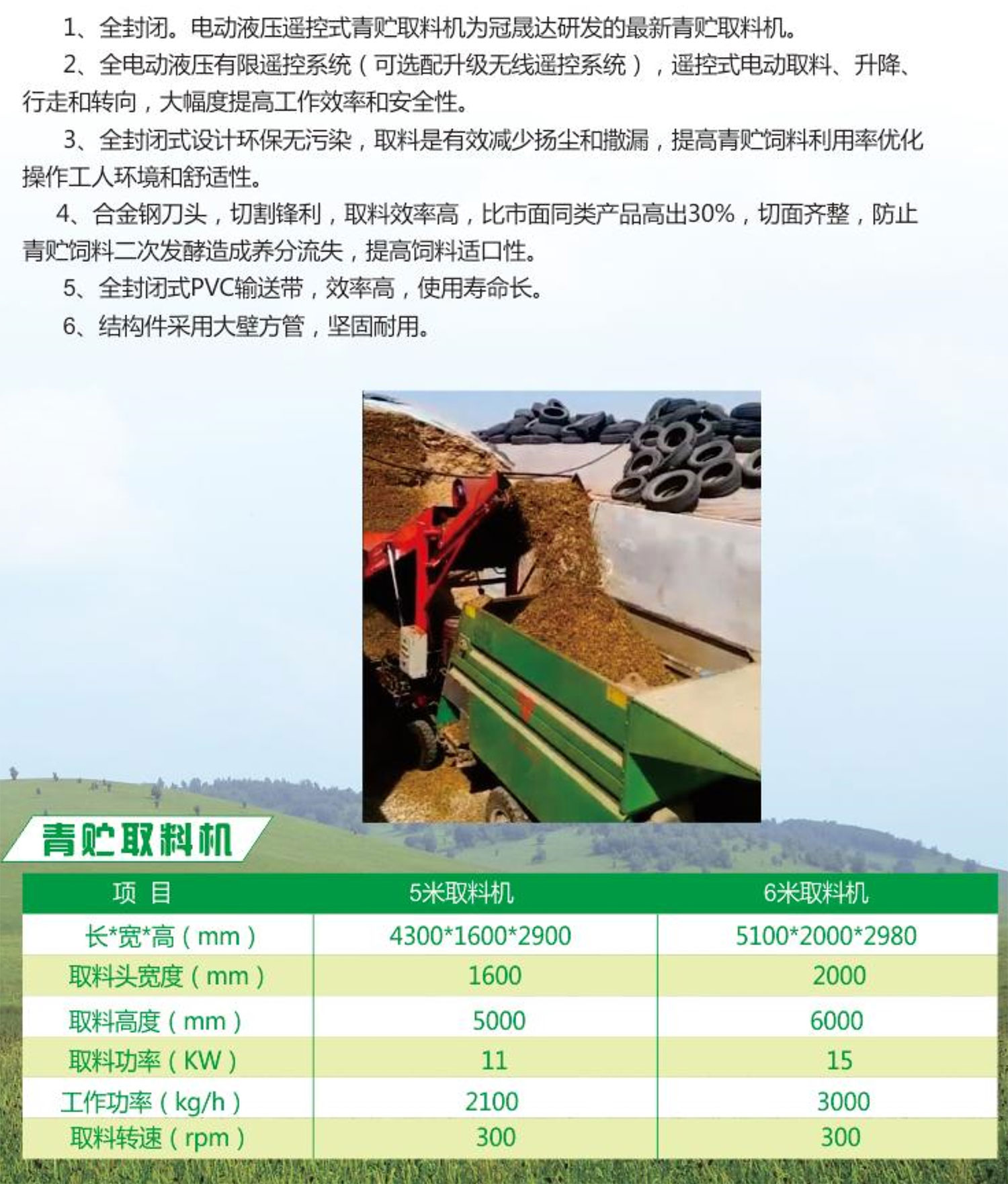 1、全封闭。电动液压遥控式青贮取料机为冠晟达研发的最新青贮取料机。